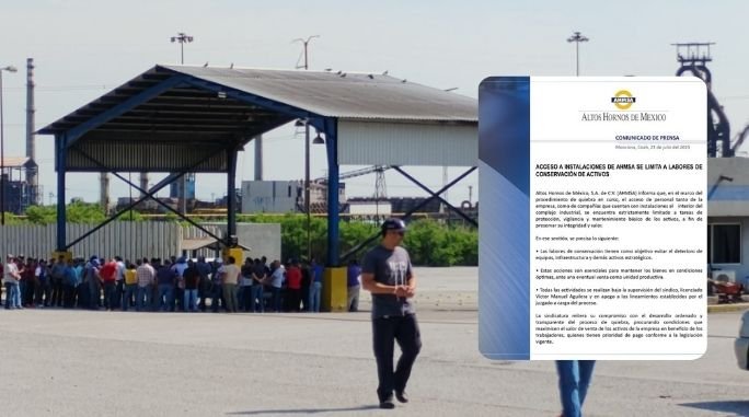 A través de un boletín de prensa, Altos Hornos de México (AHMSA) informó que el acceso a sus instalaciones industriales está restringido de forma estricta. Sólo se permite la entrada de personal necesario para realizar tareas de conservación, protección y vigilancia, como parte del proceso de quiebra en curso.