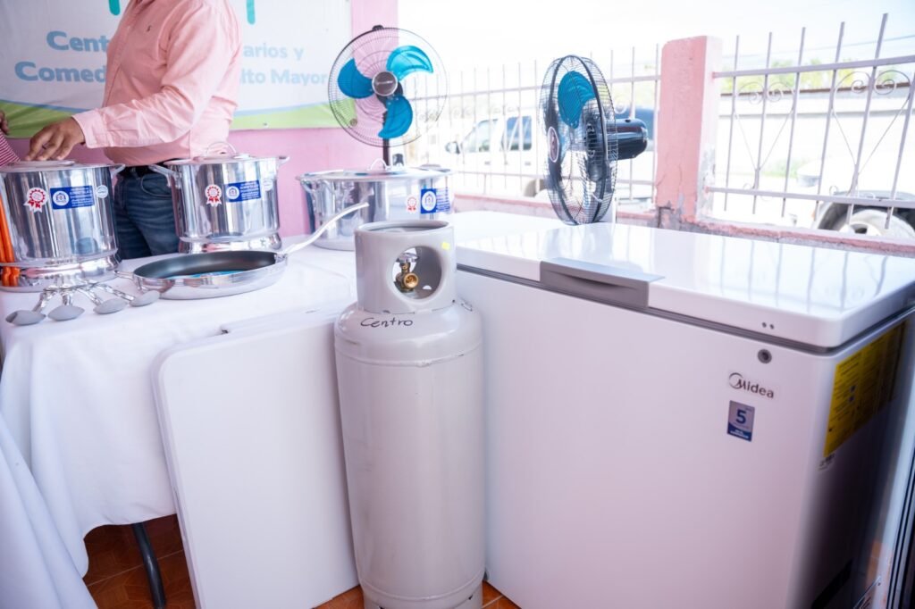 Entre los artículos entregados se encuentran utensilios de cocina, un congelador, estufa, tanque de gas, mesas plegables y ventiladores, todo ello con el objetivo de ofrecer un espacio más funcional, digno y cómodo para las y los adultos mayores.