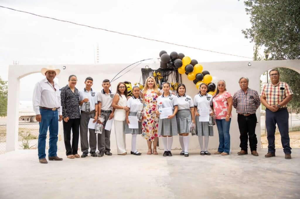 Castaños, Coahuila a 09 de julio del 2025.- Como parte de su compromiso con el sector educativo, la alcaldesa de Castaños, Yesica Sifuentes Zamora, participó como madrina e invitada especial en diversas ceremonias de graduación de alumnos de distintos niveles académicos en la cabecera municipal y ejidos del municipio.