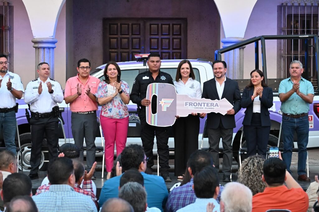 Frontera, Coahuila; a 29 de mayo de 2025.- En un evento encabezado por autoridades estatales y municipales, Frontera dio un paso decisivo para fortalecer la seguridad pública con una inversión histórica de 16 millones de pesos. Se entregaron cuatro patrullas totalmente equipadas, una unidad especial para la Policía Violeta, uniformes operativos, equipos de radiofrecuencia, cámaras de videovigilancia y estaciones de pánico en puntos estratégicos de la ciudad. Este esfuerzo fortalece a las familias de Frontera con tecnología de punta y herramientas adecuadas.