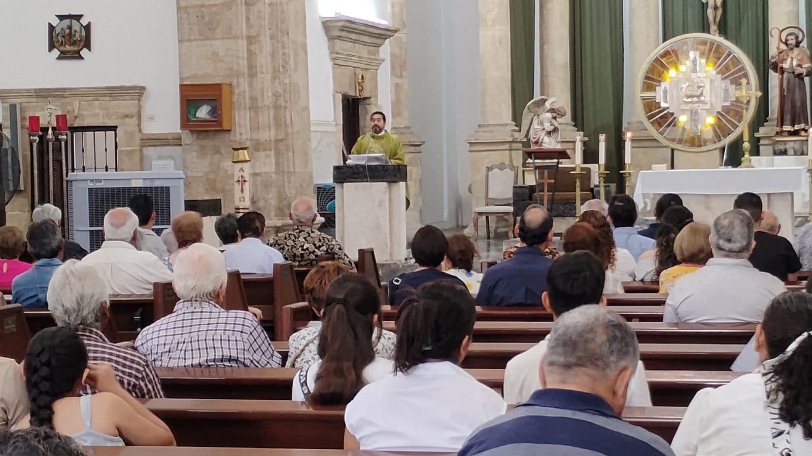 Monclova, Coahuila.– Desde el altar de la parroquia Santiago Apóstol, el padre Néstor Martínez habló con voz firme pero conmovida ante los fieles que lo escuchaban este domingo. Con palabras directas, lamentó el rumbo que ha tomado el mundo: “Vivimos un momento oscuro donde las armas callan la voz de la justicia y la paz”.