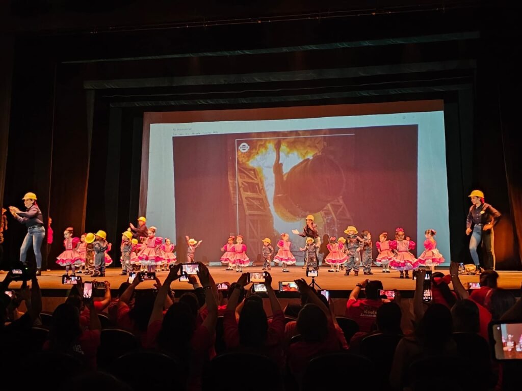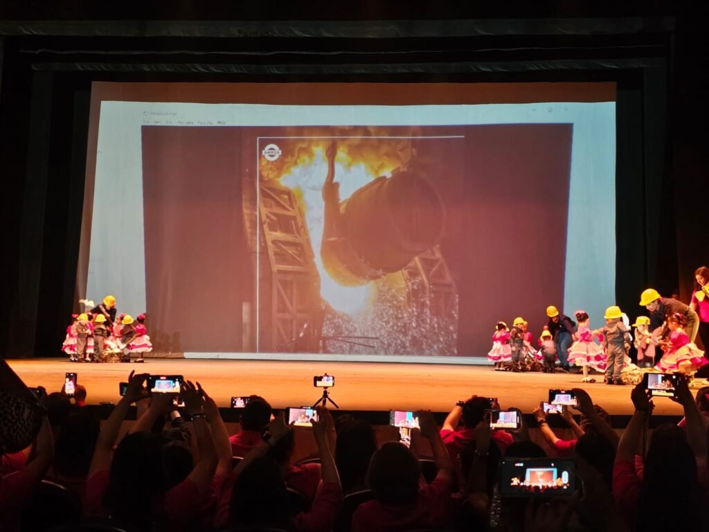 Ataviados con overoles, cascos, botas y herramientas de utilería, los pequeños protagonizaron una ronda infantil diferente. No hubo palabras, pero sí gestos que hablaban de orgullo, respeto y memoria. Cada paso sobre el escenario fue una forma de agradecer a quienes forjaron esta ciudad con sus manos.